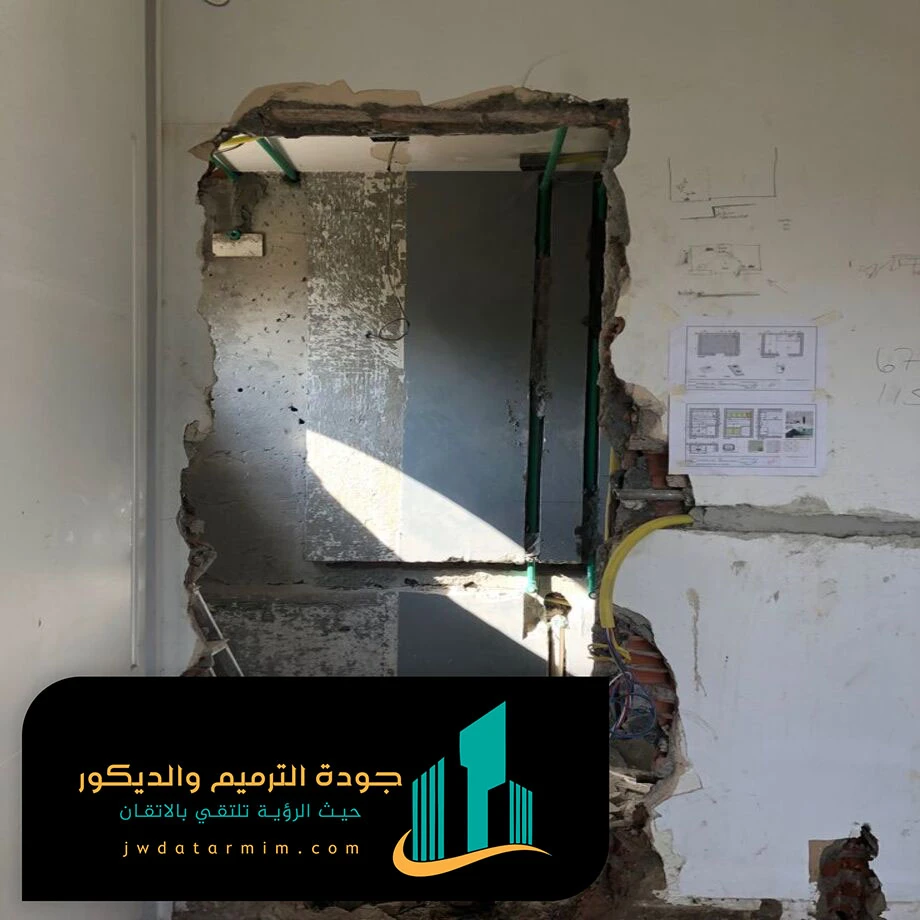 إذا كنت ترغب بفتح أبواب جديده أو توسيع الممرات فإن الحل المثالي لك هو تكسير جدران وفتح أبواب الرياض فبدلا من أن تقوم بهدم الجدار كاملا يمكننا أن نقوم بعمل تكسير جزئي بطريقة هندسية بسيطه تضمن لك سلامة المبنى و عدم تضرره أبدا و ذلك حيث يستخدم عامل تكسير جدار الرياض أفضل الطرق و المعدات الحديثه التي تقص و تكسر الجدران بدقة و بسهولة و دون التسبب بتشققات في باقي الجدار و سواء كنت ترغب في فتح باب لغرفة إضافية أو ربط المطبخ بالصالة فلدينا الخبرة الكافية لتنفيذ ذلك لأعلى معايير الجودة و الامان و للحصول على هذه الخدمه فهذه أرقامنا للتواصل معنا: